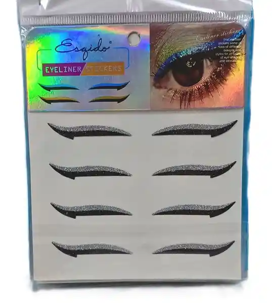 Delineador sticker, con línea negra y línea gruesa plateada.