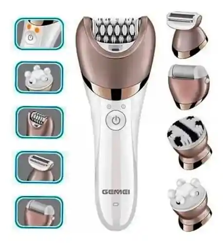 Depiladora para dama recargable de 5 cabezales intercambiables (3 cabezales depilatorios y 2 masajeadores)