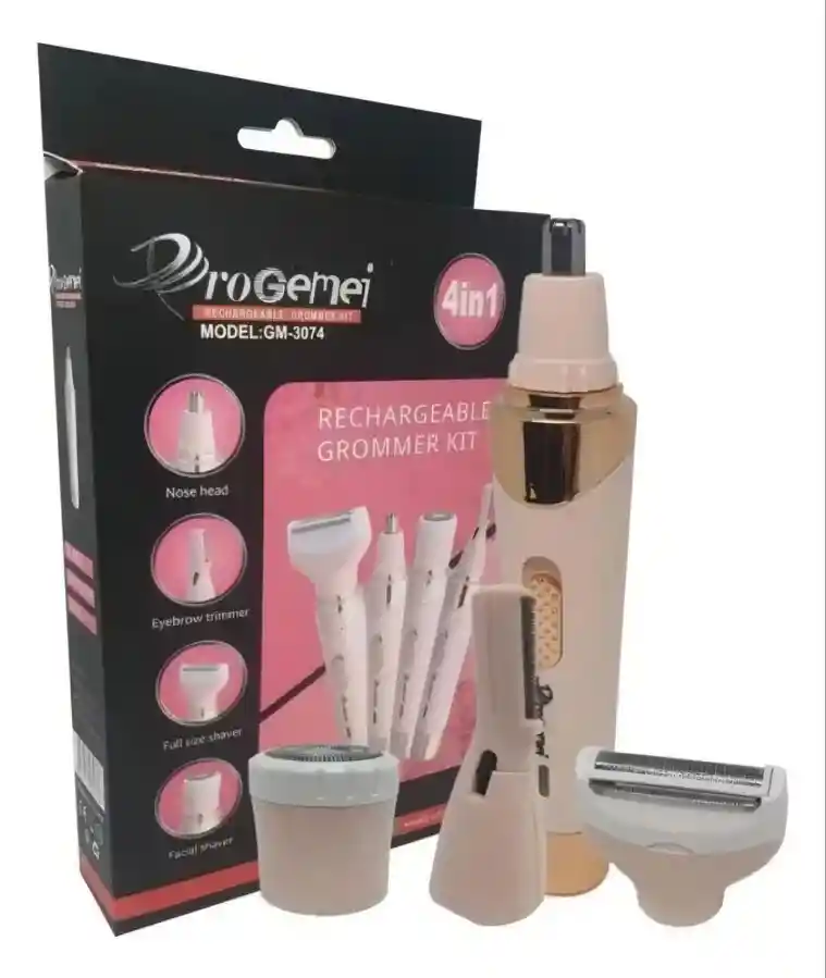 Depiladora Rasurador Eléctrico Para Dama Recargable 4 En 1 Cabeza diseño lavable Motor de cobre, no motor de plástico Titanio hoja UE/RU cargador Recordatorio de luz LED, recordatorio de trabajo, recordatorio de carga Adecuado para (cara, cabello, nariz, oído, cuerpo, brazo, pierna, subbrazo, zonas sensibles) Manual de usuario en inglés Tiempo de carga rápida 2 A 3 hora Tiempo de Trabajo 40-55 minutos Para todo tipo de piel de la mujer