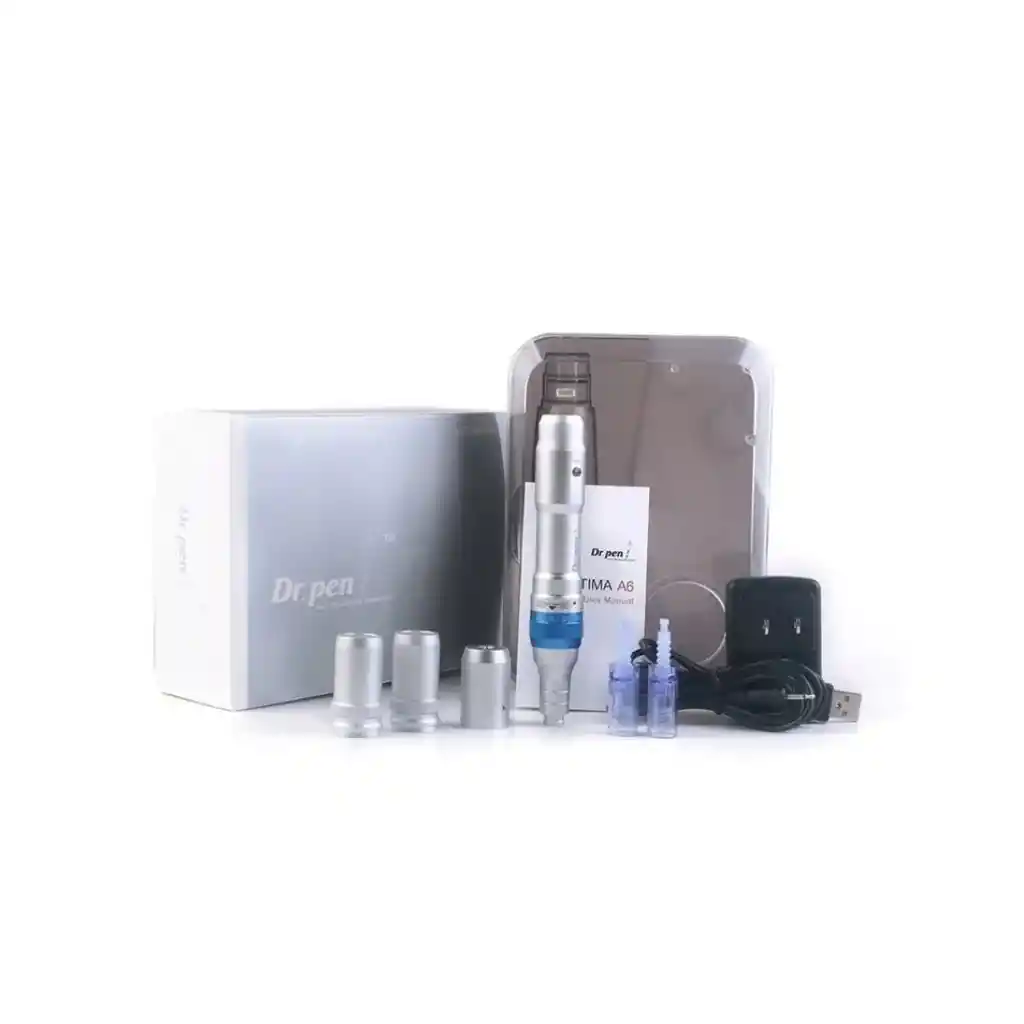 Dermapen Dr. pen A6 inalámbrico/ Cable, doble batería Motor de velocidad: Max 18000RMP Modelo: Dr.pen A6 Material: Aluminio Velocidad: 5 niveles Longitud de la aguja: 0,25mm Fuente de alimentación: inalámbrica y con cable tipo 2 en 1 Certificado: CE, ISO13485 Dr. pen de la mejor calidad Características: 1. No daña la integridad de la estructura de la piel; 2. Tratamiento progresivo de toxinas y residuos profundos de la piel; 3. Ayuda a introducir los ingredientes activos necesarios a la posición de absorción efectiva de la piel; Efecto sintomático de factores biológicos nanocompuestos únicos, propósito claro, efecto significativo, la permeabilidad de la composición del producto es cientos de miles de veces mayor que los productos de belleza ordinarios; 4. Estimula la capacidad de la piel de autocuración, mantiene la elasticidad de la piel. 6. Activar las células, hacer frente a los tejidos dañados, participar directamente en el metabolismo celular, lograr efectos cosméticos importantes 7. Utilice la capacidad curativa natural de la herida para provocar la propia nutrición de la piel y el crecimiento de colágeno; 8. Operación Simple, sin trauma. 10. Se ven cambios en la piel en un instante