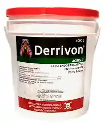 ERRIVON METRIFONATO (POLVO)es un antiparasitario de amplia acción de uso interno y externo. Contra piojos chupadores y masticadores; ácaros productores de sarna en bovinos, ovinos, equinos y cerdos; moscas; larvas de mosca; pulgas; niguas aplicar vía externa 1 litro de agua en 5 gramos de DERRIVON ®. (Solución en agua al 0,5%) lavar totalmente el animal como también instalaciones y todo lugar o implementos donde se puedan alojar los parásitos. DERRIVON ® puede ser administrado en la sal como ENDOPARASITICIDA. Mezcle 1 kg de DERRIVON ® en 5 kg de sal. (En Bovinos, Ovinos y Caprinos). En la práctica por cada 100 Kg de peso vivo administrar 10 gr. de la mezcla anterior. Administrar en saladero durante 2-3 días continuos. Solución al 10% como ENDOPARASITICIDA, disuelva 1 Kg de DERRIVON ® en 10 Litros de agua y adminístrese 50 ml de la solución por cada 100 kg de peso. Vía oral, (bovinos, porcinos y ovinos), en Equinos 3.5 mL/ 100 kg de peso.