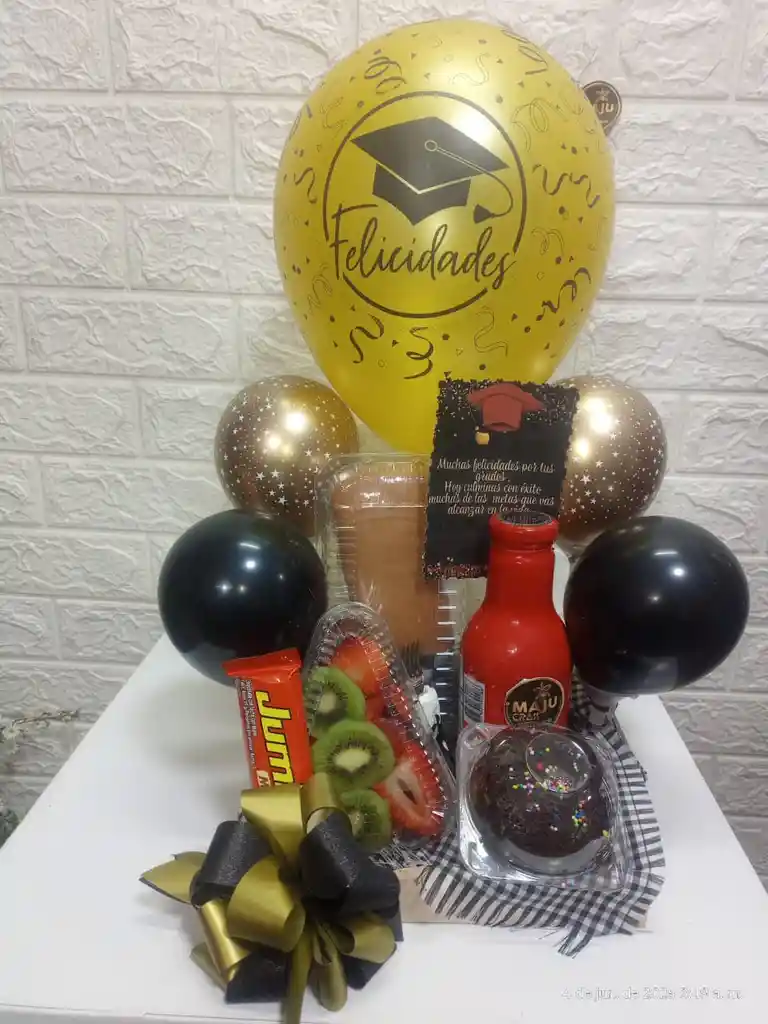 MEDIA TARDE O DESAYUNO CON: CUBANO DE JAMOS Y QUESO TE HATSU O JUGO MIX DE FRUTA CHOCOLATINA YUMBO TORTA DE BRAWNIE PERSONAL CON TARJETA PERSONALIZADA GLOBOS BASE EN MADERA