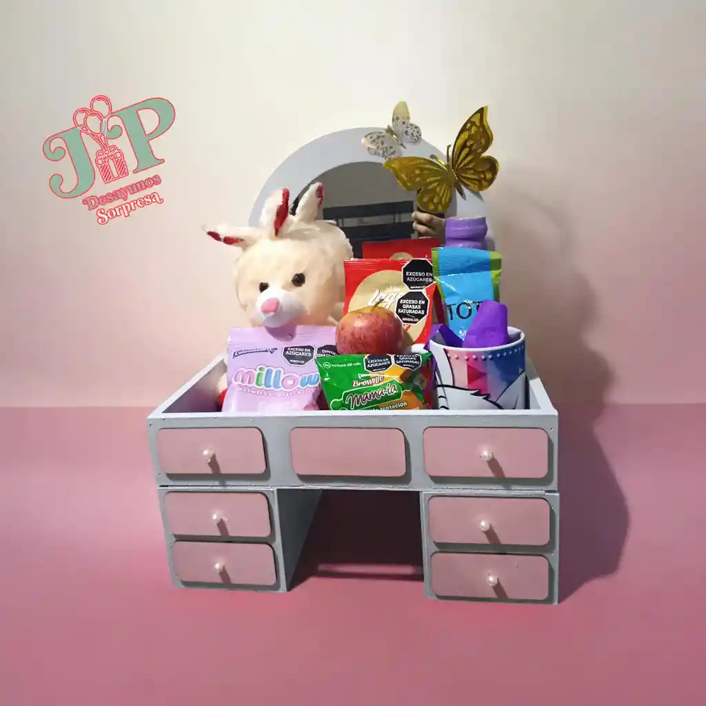 Sorprende en el día de las madres, de la mujer, san valentin o para cualquier ocasion con este detalle que contiene: Caja tocador con espejo Peluche Galletas Te hatsu Mani Fruta Masmelos Brawnie Mug decorativo Frase personalizada ( Por favor escribir al 3144524281 la frase que desees )