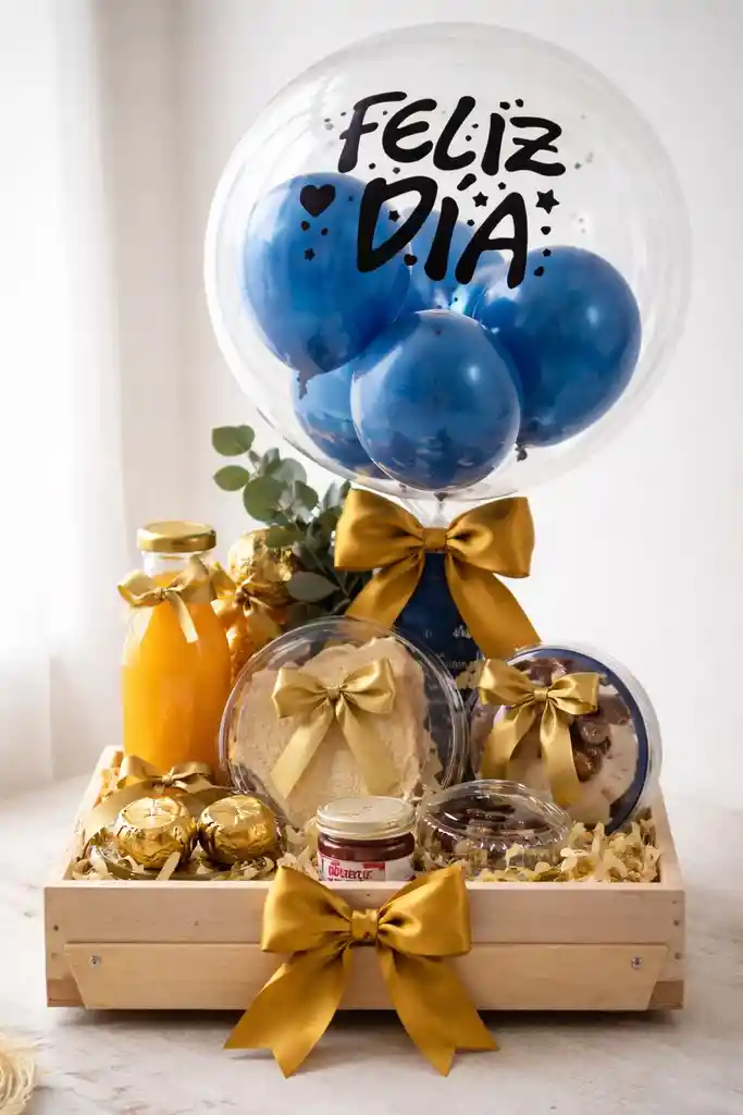 CONTENIDO: Bebida Sanduche Fruta picada Postre Chocolates Tarjeta personalizada