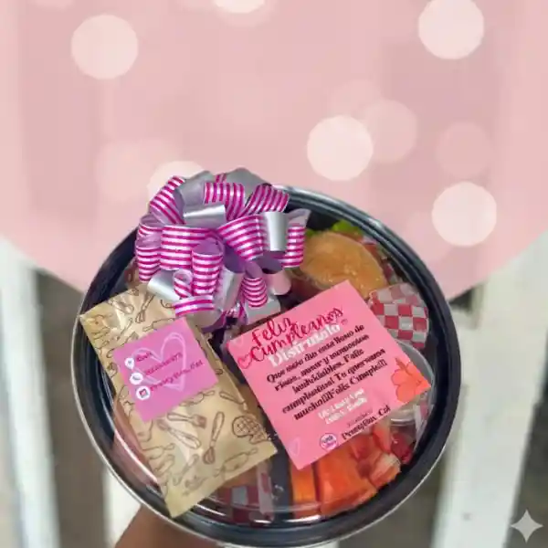 Contenido Ronda 2 🍽️✨ Disfruta nuestra Ronda 2, una presentación práctica y llamativa que combina sabores dulces y salados, ideal para compartir o para sorprender en una ocasión especial. Incluye: 🥪 Sándwich artesanal de tocineta 🧇 Patacones y costilla 🍍 Huevos revueltos 🌯 Rollos de jamón y queso 🧇Mani Todo presentado en una bandeja redonda, cuidadosamente organizada y lista para disfrutar, elaborada con ingredientes frescos y de excelente calidad.