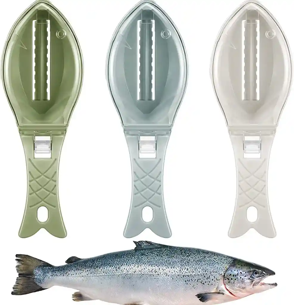 Desescamador de pescado, con un diseño encantador en forma de pez - Super practico a la hora de usar, ya que las escamas no saldrán volando si no quedarán guardadas dentro del escamador - En la parte inferior cuenta con agujero en el mismo material del producto para lograr la escamación del pescado sin ningún problema y sin pensar en la compra de cuchillas nuevas. -Su limpieza y lavado es fácil, además cuenta con mango y diseño de agujero colgante, para colgar sin ningún problema. Ficha Técnica: Diseño: En forma de pez. Incluye: cuchilla dentada de plástico. Material: ABS + AS Color: como se muestra Tamaño: 16cm * 5. 5 cm * 3. 5cm Contenido de la caja: 1 x Raspador de escamas de pescado.
