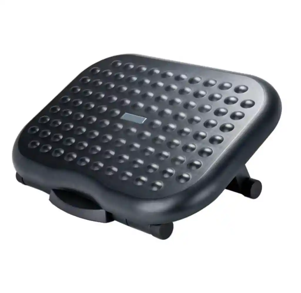 Color: Gris Material: Plástico de alto impacto Base: Caucho Antideslizante Ajustes: Altura ajustable en 4 niveles, Ángulo ajustable con sistema basculante, Mínimo 14 cm Máximo 18 cm Forma: Altura ajustable Medidas: 33×45 cm