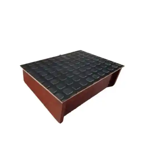 Accesorio ergonómico para oficina, conocido por estar fabricado en madera reforestada con superficie de caucho antideslizante, diseñado para mejorar la postura y la circulación sanguínea.