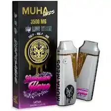 Vaporizador desechable Muhamed con HHC, 3.5 ml de capacidad y hasta 1600 puffs. Cuenta con niveles de voltaje ajustables: bajo, medio y alto. Disponible en variedad de sabores