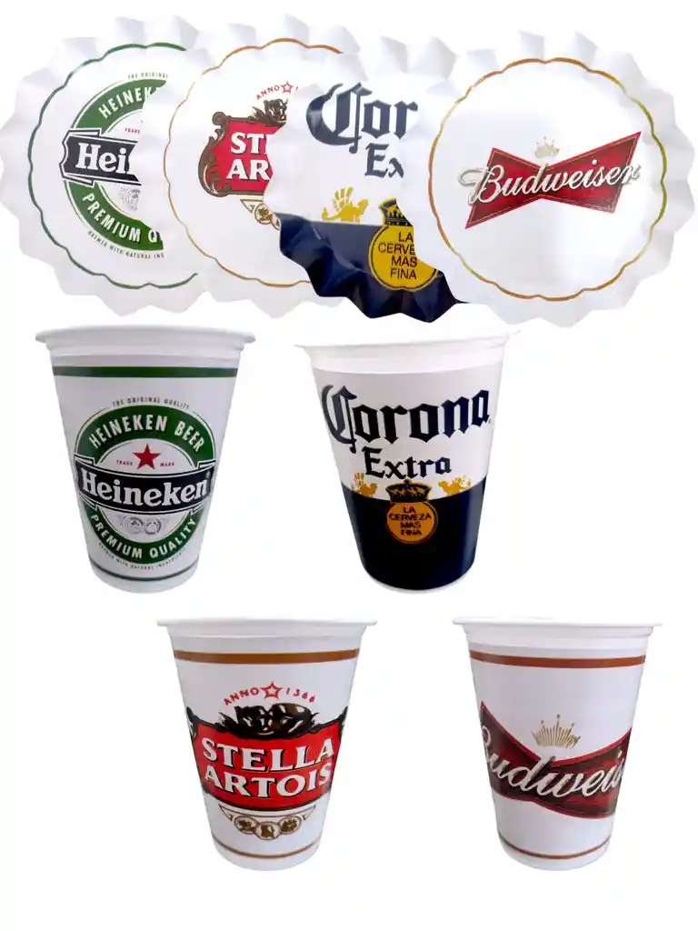 Platos y vasos para cumpleaños Hombre Cerveza todas las marcas ( Heineken- Budweiser-Corona-stella artois) 12 vasos 12 platos disfrutar con amigos es la mejor manera de celebrar Feliz cumpleaños Somos THE JOKER