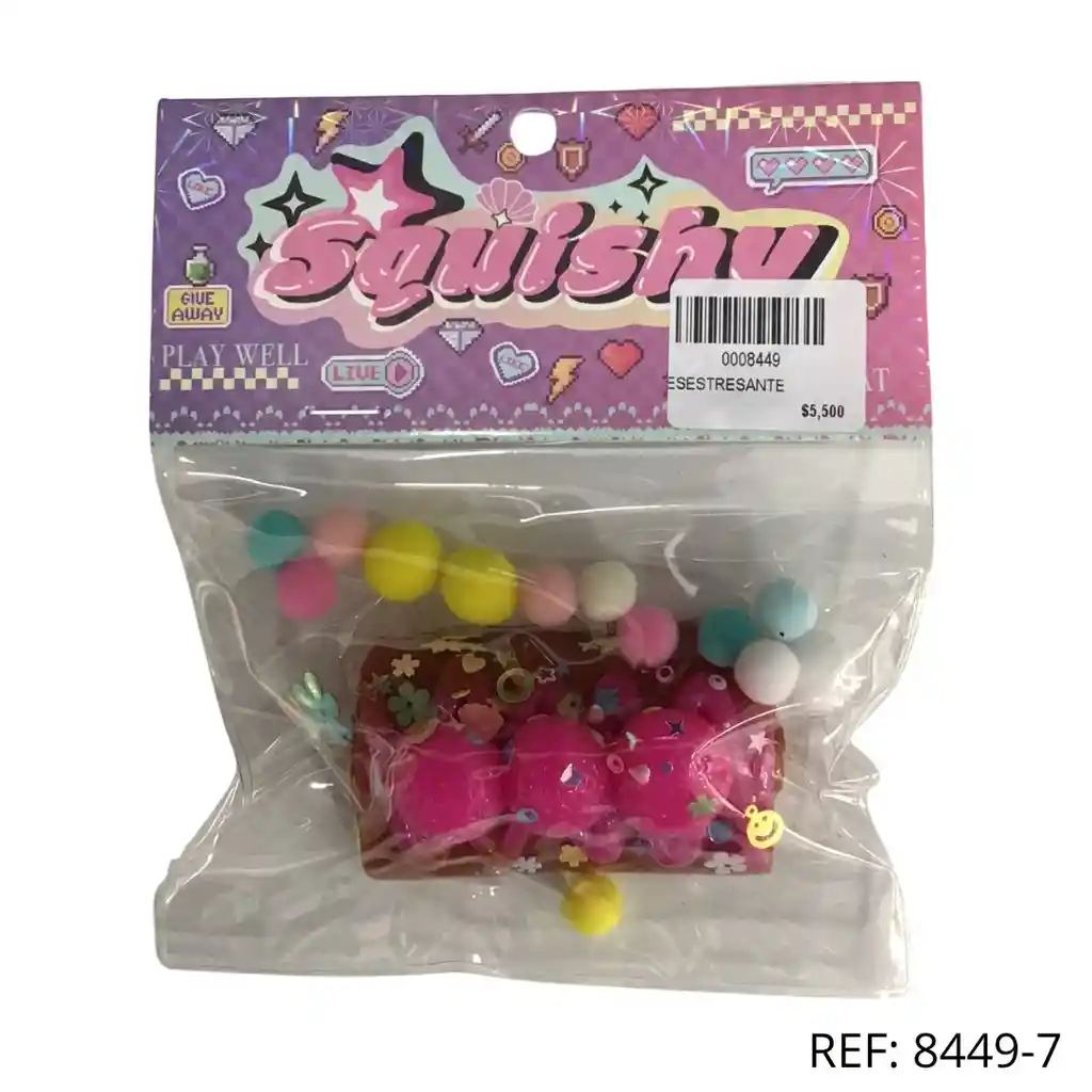 Squishy rojo con confeti decorativo y pompones. Perfecto para jugar y relajarse