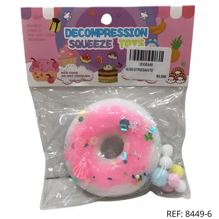 Donut antiestrés rosado con lentejuelas, ideal para jugar y liberar tensión.