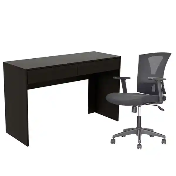 Escritorio Nova Con Amplia Superficie de Trabajo, Incluye Dos Cajones, Material Del Escritorio en Madecor Wengue Medidas Escritorio : 75 Alto x 120,2 Ancho x 45 Largo. Silla Turmanila Gerente Material: Asiento Tapizado en Paño y Espaldar Con Malla Nylon Base Nylon Con Rodachinas Tipo Europa. Silla Giratoria Regulable en Altura Mediante Una Palanca de Metal Ubicada en el Asiento. Brazos en Polipropileno Regulables en Altura Soporte Lumbar Regulable en Altura y Profundidad. Mecanismo Basculante. la Silla Tiene Una Rotacion de 360°. Medidas Silla: 91 - 116 Alto x 47 Ancho x 51 Fondo.