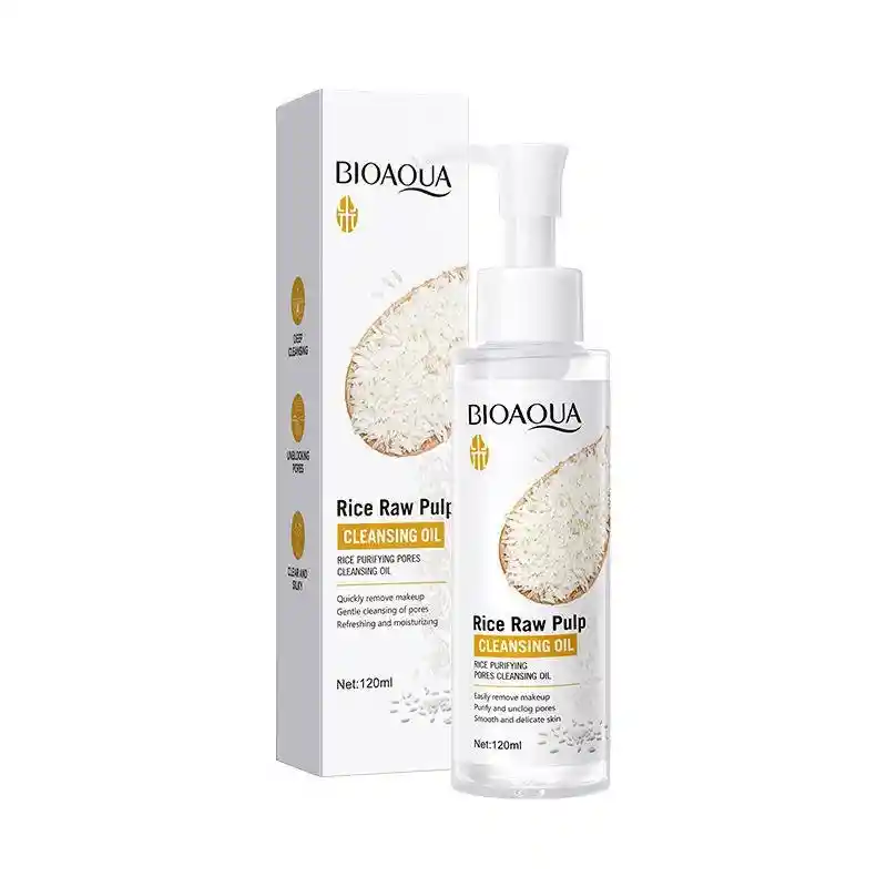 Desmaquillante en Aceite Arroz Bioaqua 120ml Aceite limpiador de poros con extracto de arroz, quita el maquillaje rápidamente. Se emulsiona al contacto con el agua facilitando el desmaquillar la piel al tiempo que la limpia. Ingredientes: aceite mineral, palmitato de etilhexilo, laureth-4, agua, isoestearato de glicerilo PEG-25, butilenglicol, fragancia, extracto de Oryza sativa (arroz), fenoxietanol. Modo de Uso: Aplique una cantidad adecuada de este producto en la palma de la mano, distribúyalo uniformemente sobre el rostro y masajee con movimientos circulares. Una vez que el producto haya disuelto por completo el maquillaje y la suciedad, humedezca las manos con un poco de agua y masajee suavemente para emulsionar. Finalmente, enjuague bien con agua limpia. Método de Almacenamiento: Consérvelo en un lugar fresco y seco, evitando las altas temperaturas y la luz solar directa. NOTA: Este producto es solo para uso externo. Se recomienda realizar una prueba cutánea antes de usarlo. Si experimenta alguna molestia o reacción cutánea anormal, suspenda su uso inmediatamente. Evite el contacto con los ojos. En caso de contacto accidental con los ojos, enjuáguelos inmediatamente con abundante agua. Mantenga este producto fuera del alcance de los niños.