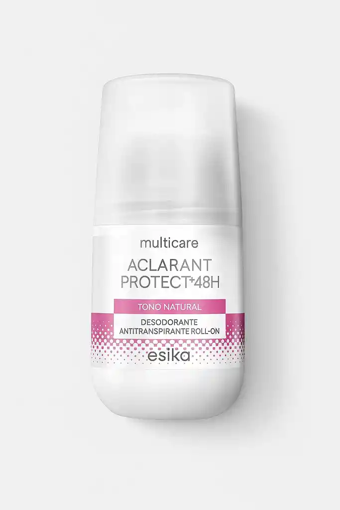 🌸 Desodorante Aclarant Protect 48H – Ésika (Original) ✨ Descripción: Disfruta de una piel suave, protegida y con tono uniforme con el desodorante Aclarant Protect 48H de Ésika. Su fórmula avanzada ayuda a aclarar las axilas mientras brinda protección efectiva por 48 horas. 📦 Detalles del producto: Tipo: Desodorante antitranspirante roll-on Línea: Multicare Efecto: Aclarador y protector Duración: 48 horas Tono: Natural Marca: Ésika Producto nuevo y sellado 🌼 Beneficios: Aclara y unifica el tono de la piel. Protege contra el sudor y el mal olor. Fórmula suave, ideal para piel sensible. De rápida absorción y sin residuos.