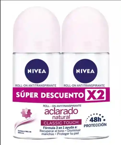 El desodorante Nivea Roll-On Aclarante Natural en presentación de 2 unidades es la opción perfecta para quienes buscan protección efectiva mientras cuidan el tono de la piel. Su fórmula está diseñada para ayudar a reducir el oscurecimiento en las axilas y promover un tono más uniforme, brindando una apariencia más limpia y cuidada con el uso constante . Además, ofrece una protección antitranspirante confiable que combate el sudor y el mal olor durante todo el día. Al aplicarlo, se siente una textura suave que se desliza fácilmente, dejando una sensación fresca, seca y cómoda desde el primer momento. Su contenido con ingredientes como vitamina C y agentes hidratantes ayuda a cuidar la piel, manteniéndola más suave y saludable incluso después del rasurado . El formato roll-on de 50 mL por unidad es práctico y fácil de usar, ideal para una aplicación uniforme y precisa. Su presentación doble es perfecta para asegurar continuidad en tu rutina diaria, ya sea para tener en casa o llevar contigo y no quedarte sin tu desodorante de confianza. Si buscas un desodorante que combine frescura, protección duradera y un beneficio visible en el cuidado de la piel, Nivea Aclarante Natural es una elección que vale la pena. Es ese aliado diario que te ayuda a sentirte seguro, cómodo y con una sensación de limpieza que se mantiene todo el día.