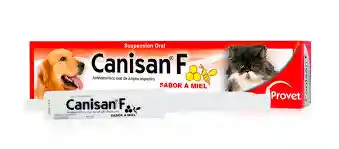 CANISAN® F es un Antihelmíntico de uso oral, contra los nematodos y cestodos de los perros y gatos en forma de suspensión, con agradable sabor a miel. CANISAN® F Está indicado para el control de los parásitos gastrointestinales más comunes del perro y del gato, tales como los nematodos: Toxocara canis, Toxascaris leonina, Ancylostoma caninum, Trichuris vulpis, Oxyuris spp., y Uncinaria stenocephala y los cestodos Dipylidium caninum, Taenia taeniformis, Taenia pisiformis, Echinococcus granulosus, Echinococcus multilocularis y los protozoarios como Giardia spp., indicado en programas de medicina profiláctica. Varios estudios han demostrado un control eficaz del Albendazol en un 100% contra los nematodos arriba mencionados a la dosis de 30 mg / Kg de peso, equivalente a 1 mL de CANISAN® F por cada 5 Kg de peso, vía oral.
