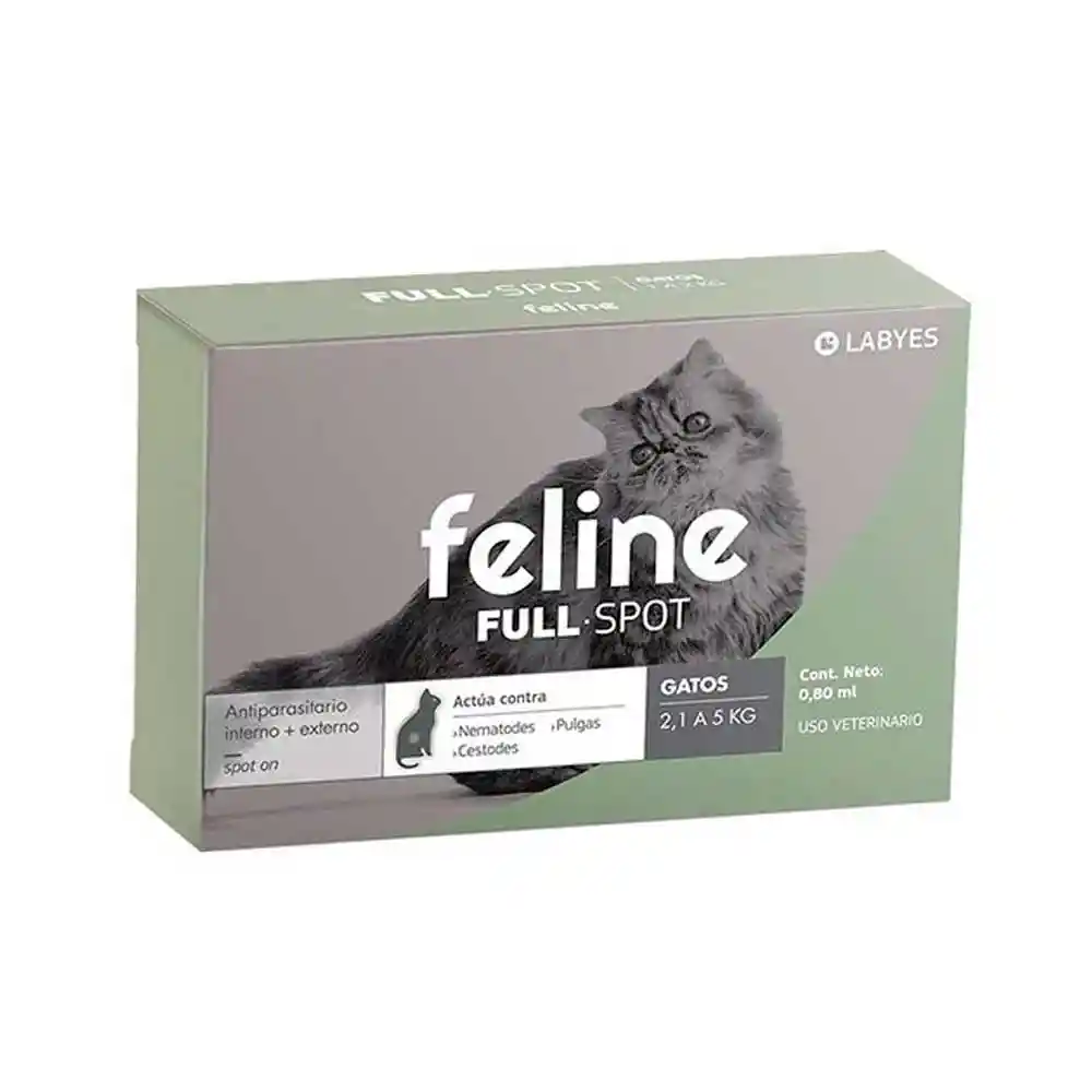 - Con Feline Fullspot la tolerancia digestiva no representa un desafío, se aplica en forma de spot-on, directamente sobre la piel, en un área de distribución desde la nuca hasta la cruz, a fin de evitar el lamido del producto. - Su efectiva formulación elimina las pulgas y los parásitos internos que frecuentemente afectan a los gatos. - La Ivermectina, lactona macrocíclica, tiene potentes efectos contra nematodes y ácaros de la sarna. - El Praziquantel, derivado sintético de la isoquinolina-pirazina, ejerce su actividad frente a trematodes y cestodes. - El Imidacloprid, es un neonicotinoide con potentes efectos pulguicidas y rápido poder de volteo. - Feline Fullspot desparasita interna y externamente al paciente felino sin generarle estrés, gracias a su aplicación tópica.