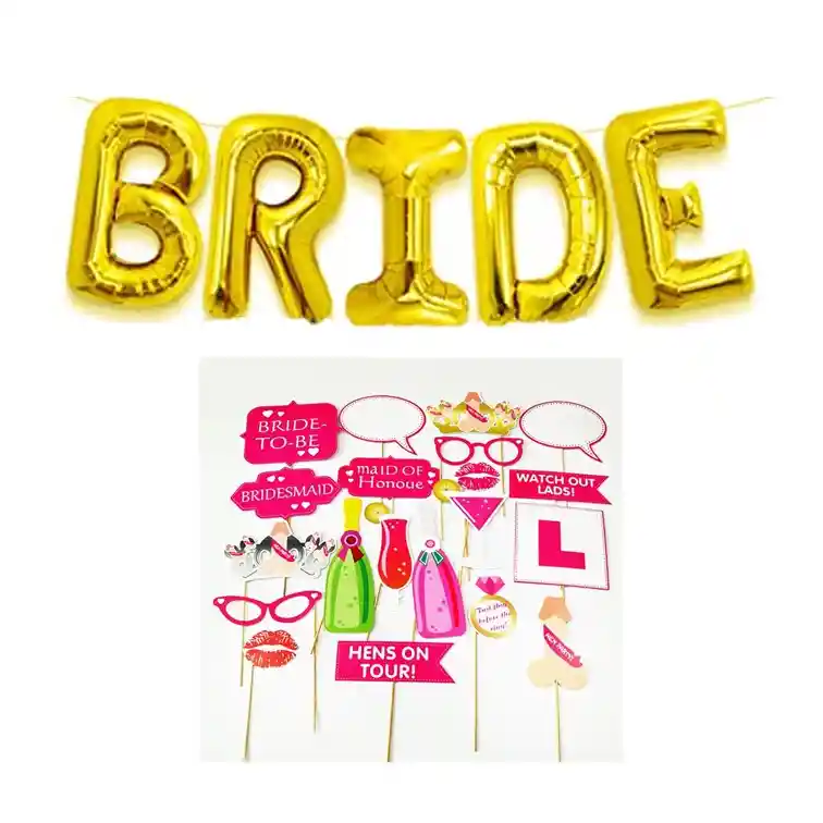 Kit decorativo para despedía de soltera selfie prop pos 10 unidades Globo Bride - de 80 cm cada Letra ( grandes ) Doradas disponiblidad inmediata