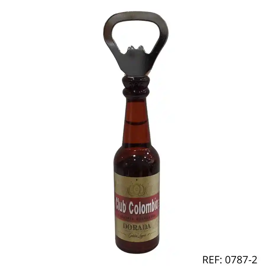 Destapador estilo botella Club Colombia. Diseño elegante, funcional y coleccionable.