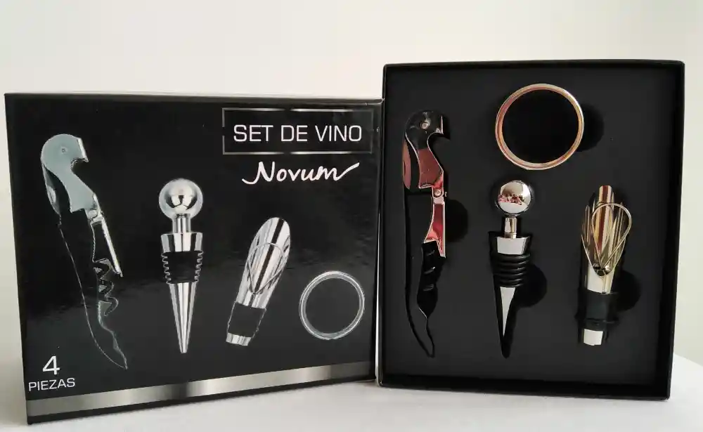 Destapador de vinos,set 4 piezas, Marca Novum, en caja dura