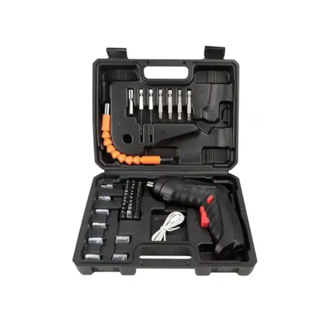 ¡La herramienta para el hogar! Con este increíble destornillador podrás llevar a cabo tareas caseras sin esfuerzo, es reversible así que podrás atornillar y desatornillar. Gracias a su articulación podrás usarlo en su configuración de pistola o en la configuración alargada para lugares de difícil acceso. CARACTERÍSTICAS: - Puntas fáciles de cambiar, incluye puntas de estrella y planas, además de un adaptador para copas. - Recargable para que lo puedas usar libremente de forma inalámbrica. - Con función reversible para atornillar y desatornillar, ajustable con un práctico botón. - Articulado para variar la configuración de agarre. TE ENTREGAMOS: 1 - Destornillador Taladro 30 - Puntas Destornilladores 8 - Copas 1 - Punta Flexible 4 - Puntas Largas 2 - Puntas Brocas 1 - Punta Copa Larga 1 - Estuche 1 - Cable USB a Micro USB