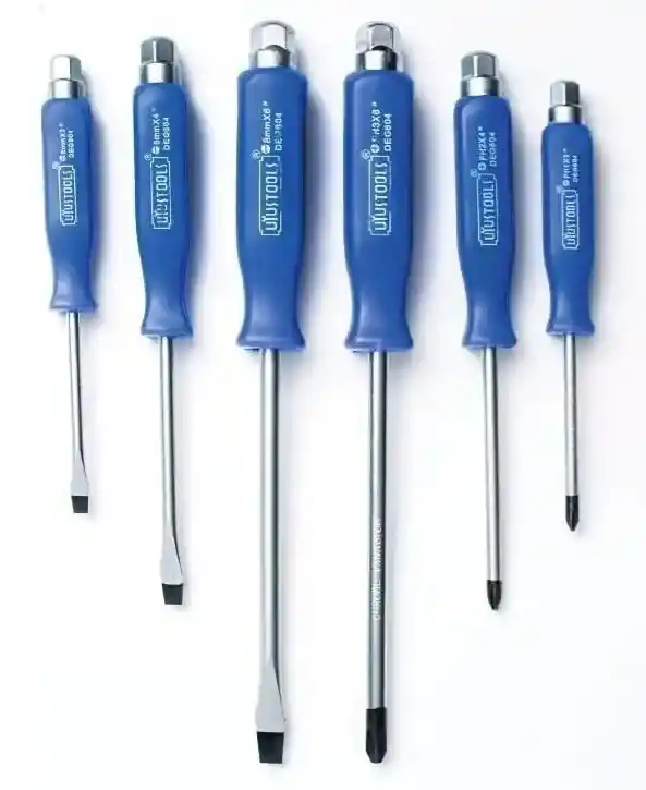 Destornilladores De Golpe Punta Imanada Azul 6pcs Uyustools Juego de 6 destornilladores punta imantada mango antideslizante posee varillas para golpes uso Profesional . Medidas planos : 5×75 6×100 8×150 Medidas estrella : 1×75 2×100 3×150
