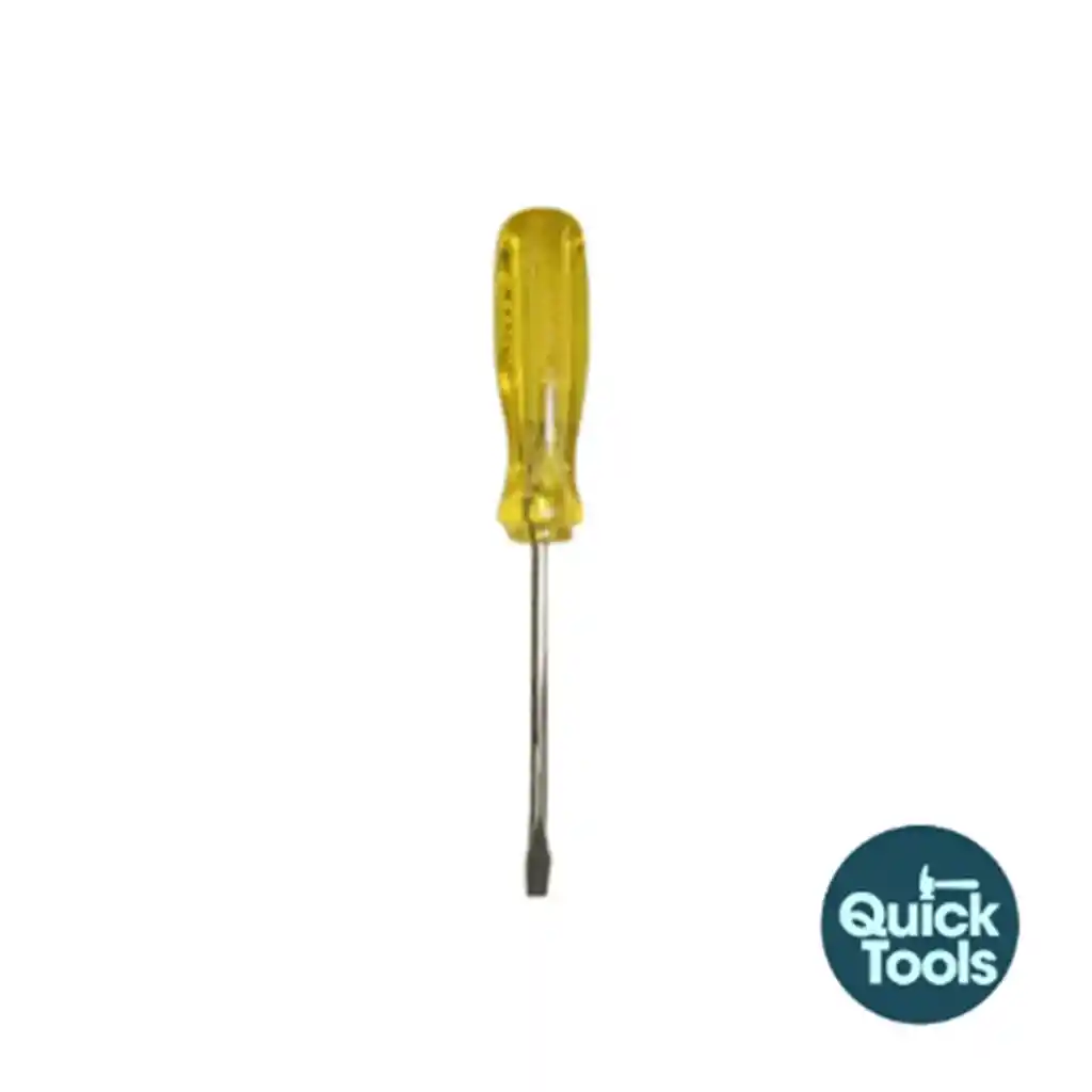 El destornillador Ranger Pala 1/4"x4" es una herramienta manual diseñada para facilitar el ajuste y desmontaje de tornillos con cabezas tipo pala (también conocidas como cabezas planas o ranuradas). Aquí te dejo una descripción detallada: Marca y Modelo: Ranger, modelo Pala. Tipo de Punta: Pala (ranurada), adecuada para tornillos con una ranura plana en la cabeza. Tamaño de la Punta: 1/4 de pulgada, lo que indica el ancho de la punta. Longitud de la Cuchilla: 4 pulgadas (aproximadamente 10 cm), proporcionando un alcance adecuado para alcanzar tornillos en áreas de difícil acceso. Mango: Generalmente ergonómico, diseñado para proporcionar comodidad y control durante el uso. Puede estar hecho de materiales antideslizantes para mejorar el agarre. Material: La cuchilla suele estar fabricada en acero al cromo-vanadio o acero inoxidable, lo que garantiza resistencia y durabilidad. El mango puede estar hecho de plástico resistente o goma. Uso: Ideal para trabajos en electrónica, reparaciones domésticas o mecánicas donde se requiera precisión al ajustar tornillos con cabezas ranuradas. Este tipo de destornillador es una herramienta básica y esencial en cualquier caja de herramientas, y su diseño lo hace versátil para una variedad de aplicaciones.