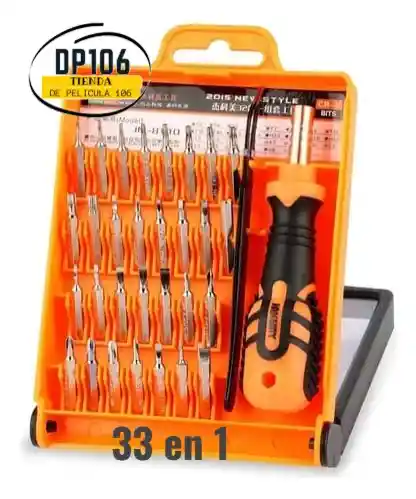 ¡Tu aliado para trabajos finos, reparaciones electrónicas y bricolaje! Este set multifuncional de destornillador de precisión es ideal para técnicos, aficionados, reparadores y amantes del "hazlo tú mismo". Con 33 piezas organizadas, te brinda todas las puntas necesarias para abrir y reparar celulares, tablets, relojes, gafas, controles, laptops y más. ✅ Características destacadas: Incluye 33 piezas: mango ergonómico, pinzas y 30 puntas intercambiables Variedad de puntas: 🔸 Triángulo (2.0, 1.8, 1.2, 0.6, 2.0, 0.8) 🔸 Hexagonal (H0.9, H1.5, H2.0, H1.5, 2.0, 3.0) 🔸 Torx (T1 a T7) 🔸 Plano y Phillips (1.2, 1.5, 2.0, 2.5, 3.0) Punta imantada para facilitar el trabajo con tornillos pequeños Incluye extensión para lugares de difícil acceso 🔧 Usos recomendados: Perfecto para electrónica, telecomunicaciones, relojería, gafas, cámaras, juguetes, computadores y mucho más. 💡 ¿Por qué elegirlo? Es un kit portátil, completo y versátil, diseñado para ofrecer precisión, comodidad y durabilidad. Una excelente opción tanto para profesionales como para uso doméstico.