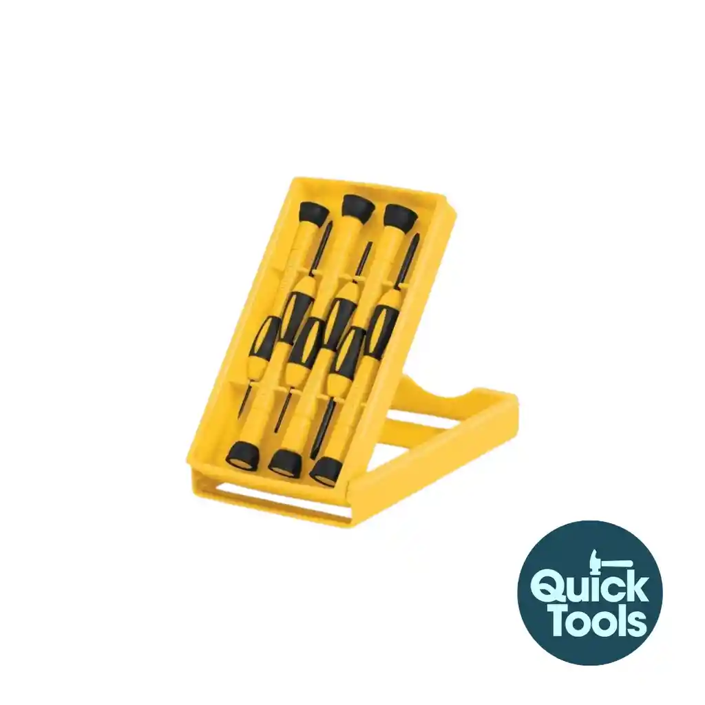 Juego con 6 desarmadores de precisión, Pretul • Puntas fabricadas de acero al cromo vanadio, 2X más resistentes al desgaste que las de acero al carbono • Cabeza giratoria • Mango antiderrapante • Para electrónica y otros trabajos de precisión