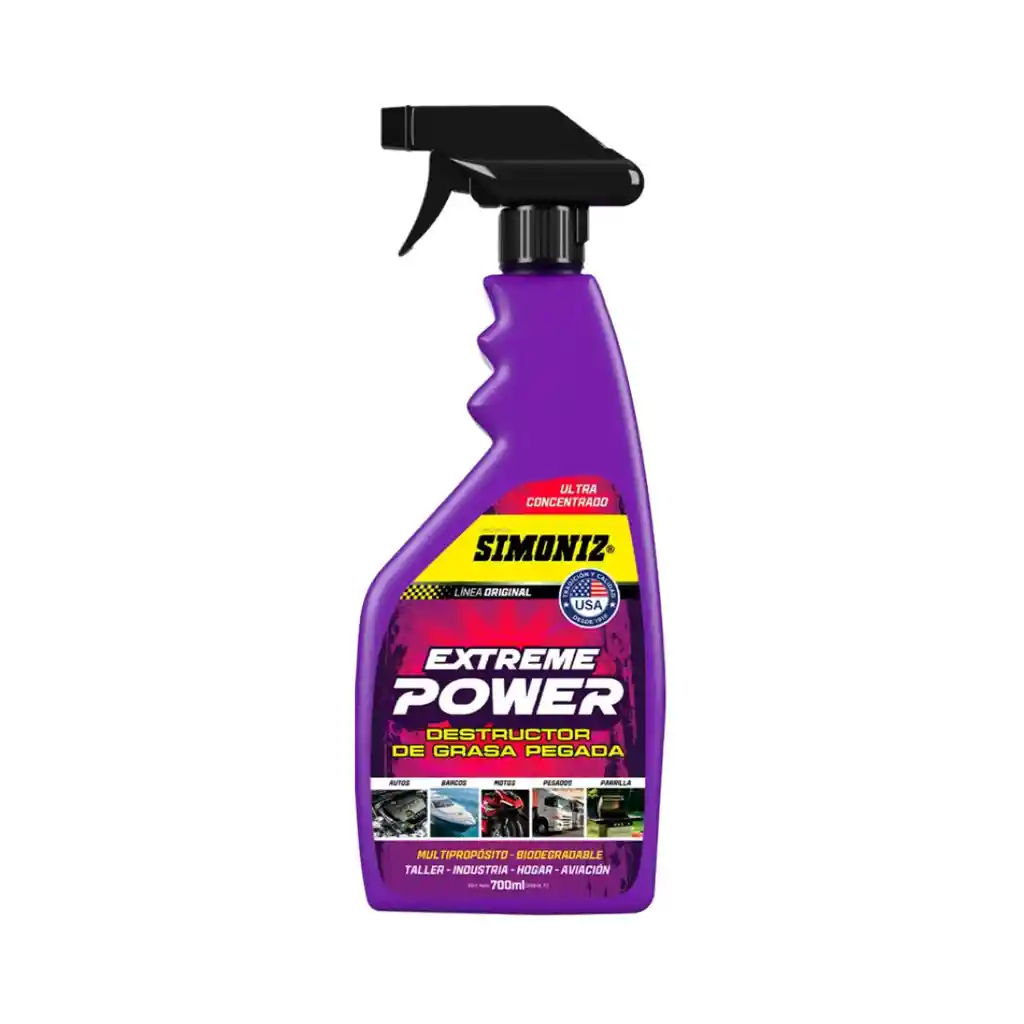 Su fórmula industrial de alta potencia penetra, disuelve y elimina grasa difícil, líquidos de motores y transmisión, kit de arrastre de motos, alquitrán, asfalto, resinas y suciedad acumulada en campanas industriales, entre otros. Puedes usarlo se manera segura en: - Aviones. - Taller. - Restaurantes. - Industria. - Impresión. - Construcción. - Llantas y rines. - Horeca. ¡El destructor de la grasa más pegada!