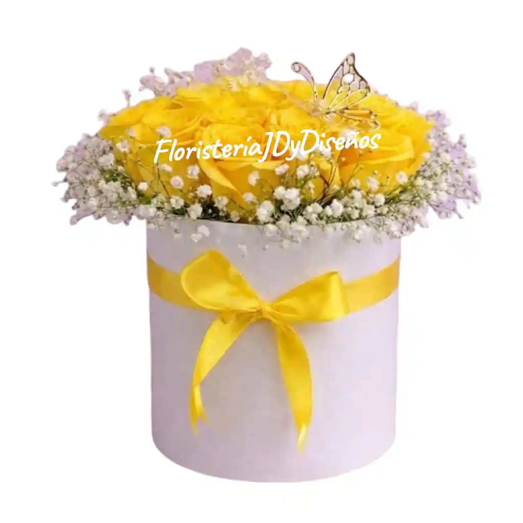 ELEGANTE CILINDRO FLORAL CON ROSAS AMARILLAS Y FOLLAJES (PERLITA)