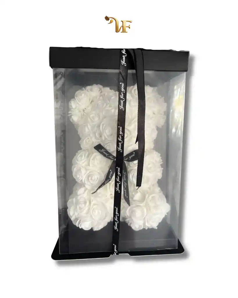 Detalle Oso Cubierto En Rosas Blanco
