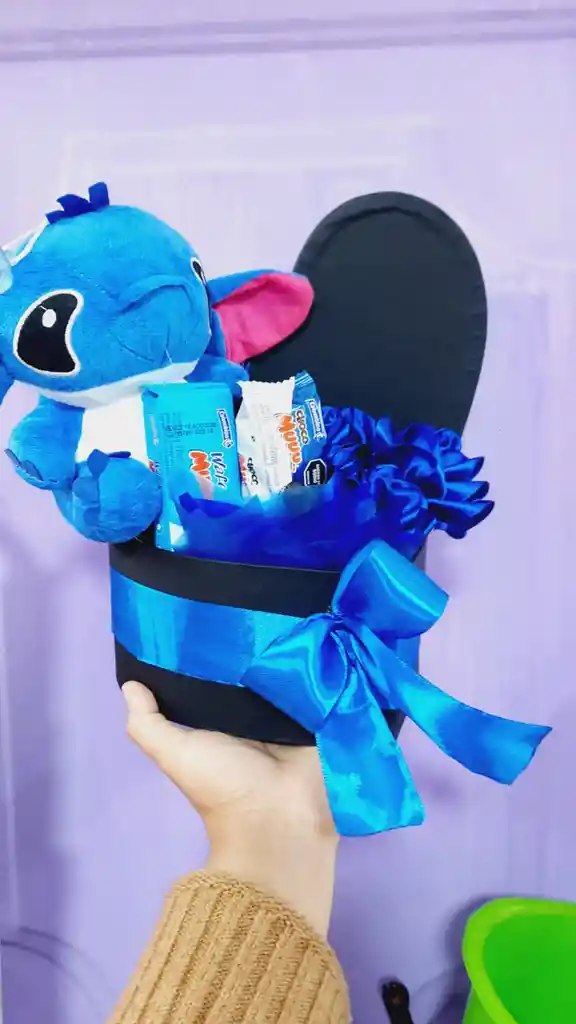 Un hermoso arreglo , para sorprender a esa persona especial en su día Caja en forma de corazón 3 rosas eternas azules Peluche de stitch azul 2 galletas Si deseas un detalle adicional, nos puedes escribir vía whatsaap al 322-452-09-50