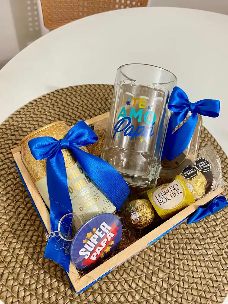 Sensacional detalle para papá, cerveza club Colombia en lata 330 cm3, Chocolates ferrero Rocher por 3 unidades, Espectacular vaso cervecero con personalización "TE AMO PAPÁ"