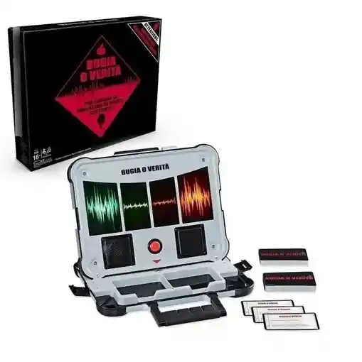 El juego electrónico Detector de mentiras es extremadamente divertido y puede que te sorprenda que realmente ayuda a descubrir la verdad. Las pruebas de detección de mentiras se han convertido en un elemento esencial de la cultura, lo que ha producido resultados comiquisimos en programas de televisión y videos. Este juego para adultos cuenta con una tecnología de análisis de voz diseñada para detectar sutilezas en la voz, que ayudan a saber si la persona dice la verdad o no. El jugador sentado en la silla de la verdad debe contestar "sí" o "no" a incómodas preguntas como "¿Si descubrieras que un amigo cometió un crimen horrible, lo entregarias?". Puedes crear preguntas explosivas de "sí" o "no" rellenando los espacios en blanco como "¿Algunas vez te has quedado dormido mientras ?". Igualmente, ¡puedes inventar la pregunta de "sí" o "no" que quieras! Debes decir la verdad para ganar puntos; sin embargo, una mentira le da puntos a tu oponente. Después que todos hayan pasado por la silla de la verdad, el jugador con más puntos gana. Hasbro Gaming y todos los términos relacionados son marcas de comercio de Hasbro. • Incluye unidad de de detector de mentiras real, 64 tarjetas (126 preguntas) e instructivo.