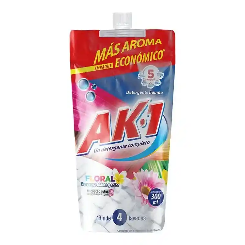 El Detergente Líquido AK1 Floral en su práctico formato Doypack de 300 mL ofrece una limpieza efectiva para las prendas de uso diario, gracias a su fórmula con dos activos cuidadosamente seleccionados que potencian su poder. Diseñado para uso en lavadora o lavado a mano, elimina la suciedad y las manchas difíciles mientras cuida las fibras de la ropa, manteniéndola como nueva por más tiempo. Su aroma floral perdura en las prendas después del lavado, proporcionando una sensación de frescura y limpieza que acompaña todo el día. El formato Doypack de 300 mL es ergonómico, fácil de almacenar y perfecto para hogares pequeños, viajes o para probar el producto antes de adquirir presentaciones más grandes. ______________________________________________________ ________ Somos QUICK MART Comercializadora y Distribuidora de productos Nacionales e Importados, calidad garantizada 100% original. Dentro de nuestro portafolio de productos podrás encontrar licores (debidamente estampillados), alimentos, dulces, productos de aseo y mucho más de acuerdo a tu necesidad. Estamos ubicados en la ciudad de Bogotá, por medio de MERCADO ENVÍOS hacemos despachos a nivel nacional, si compras antes de la 14pm por MERCADO FLEX entregamos el mismo día (aplica solo para Bogotá), en horario extendido hasta las 10 p.m. Invitamos a nuestros clientes a visitar nuestra tienda virtual en MercadoShop con las mismas garantías de Mercado Libre, allí podrás conocer todo nuestro catálogo y encontrar promociones que solo aplican en nuestra tienda virtual. Las imágenes utilizadas son de referencia y por lo tanto la presentación del producto puede variar en el momento del despacho, el producto es el mismo ya el empaque depende de cada proveedor. ______________________________________________________________