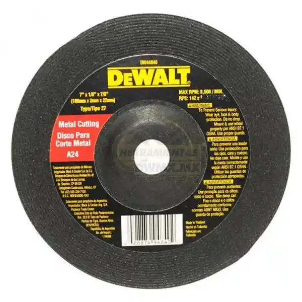 Sivo Corte T42 7 X 1/8 Dewalt Dw54840 Discos Abrasivos T42 Para Corte de Metal, Diámetro de 7 Con un Espesor de 1/8 y Eje de 7/8. Los Discos Abrasivos Dewalt Están Diseñados Especialmente Para Ofrecer un Alto Nivel de Desempeño y Vida Útil