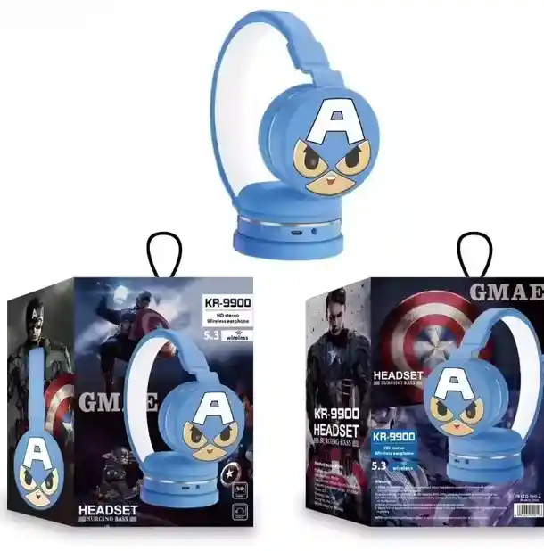 CARACTERÍSTICAS: * Hermosa diadema bluetooth con diseño de Capitan america. * Almohadillas de piel sintética para aislar el ruido exterior. * Conexión Bluetooth * Sonido de gran calidad * Material resistente * Compatible con IOS Y ANDROID * Audífonos Acolchados * Puerto de carga, micro USB.
