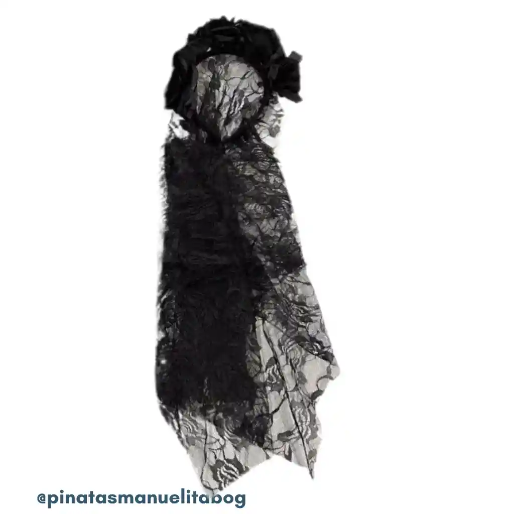 Diadema con velo para disfraz de Catrina con detalle de flores negras, se adapta fácilmente a la cabeza. (Se puede usar con el velo para adelante o para atrás) Accesorio Halloween