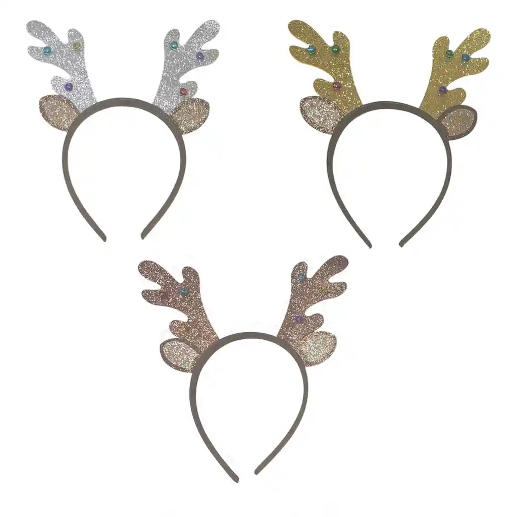 Añade un toque magico y festivo a esta Navidad Nuestra diadema de reno combina elegancia y diversión gracias a su acabado dorado Plateado o Cafe brillante y sus tiernos cuernos decorativos perfectos para fotos fiestas posadas eventos escolares o simplemente para contagiar espiritu navideño Diseño de reno con acabado Dorado Plateado o Cafe escarchado Incluye cascabeles que tintinean suavemente al moverse Material ligero cómodo y apto para niños y adultos Ideal para celebraciones disfraces regalos o decoracion Se envia aleatoriamente