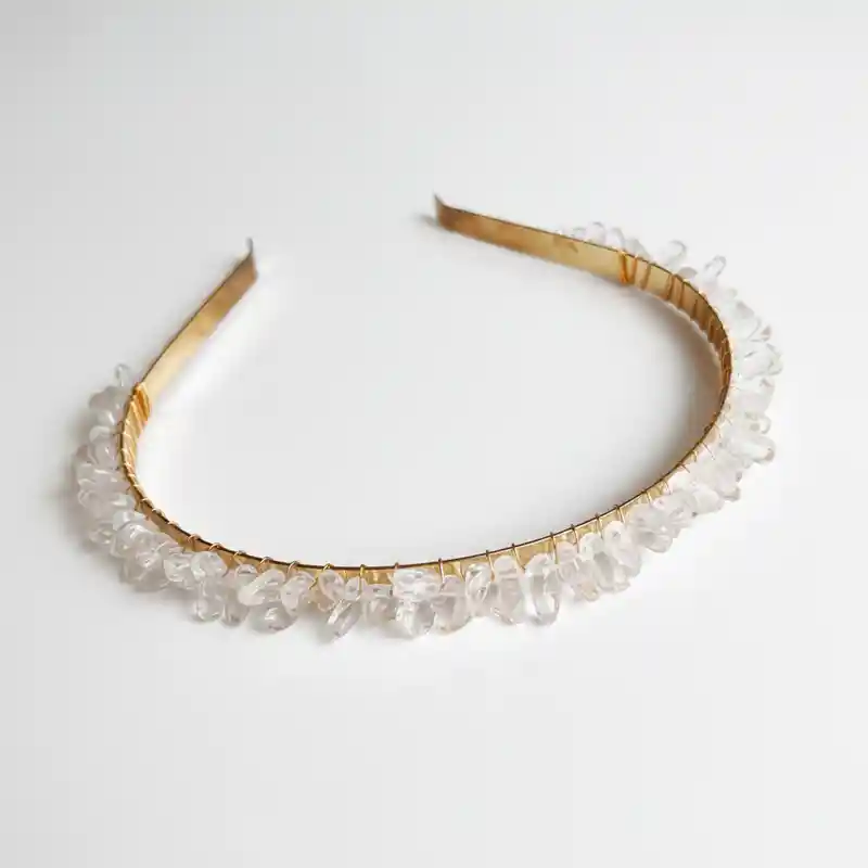 Hermosa diadema en cuarzo para proteger tu energía y complementar tus outfits.