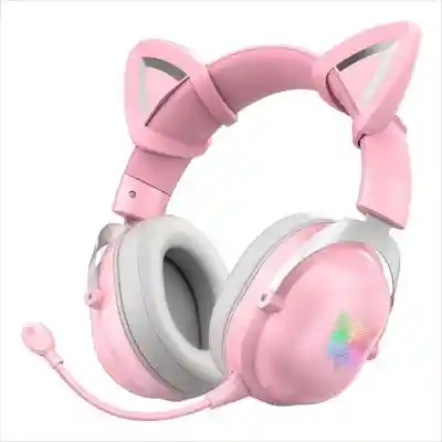 ONIKUMA (B20) RGB Cat Ears Bluetooth 5.0 Auriculares para Gamer con sonido estéreo y micrófono HD. Auriculares con batería duradera de modo dual con cable/inalámbrico para PC, Xbox, PS4, PS5, teléfono. CARACTERISTICAS Cómodo de llevar, Diseño ergonómico. • Orejeras agradables a la piel. • Haz de cabeza retráctil. • Las orejeras se pueden voltear. • Micrófono removible. • Orejas de gato con iluminación colorida. Totalmente compatible: Bluetooth/modo dual con cable. • Fácil de usar en todos los dispositivos gracias a los modos de conexión dual. Orejas de gato de iluminación colorida. • Batería de larga duración/transmisión estable/cómodo de llevar. Múltiples botones independientes, de fácil operación. Sonido estéreo 3D. Distancia de transmisión estable de 10 metros. • 50 unidades con afinación para brindar un amplio campo de sonido. • Identifique fácilmente los agudos, medios y graves, restablezca el sonido real en vivo. Gran capacidad de 1000 mAh, doble resistencia, modo de espera superlargo • Batería de litio de gran capacidad para satisfacer la demanda de música y juegos todo el tiempo. Sin miedo a los cortes de energía cuando viaja al aire libre.