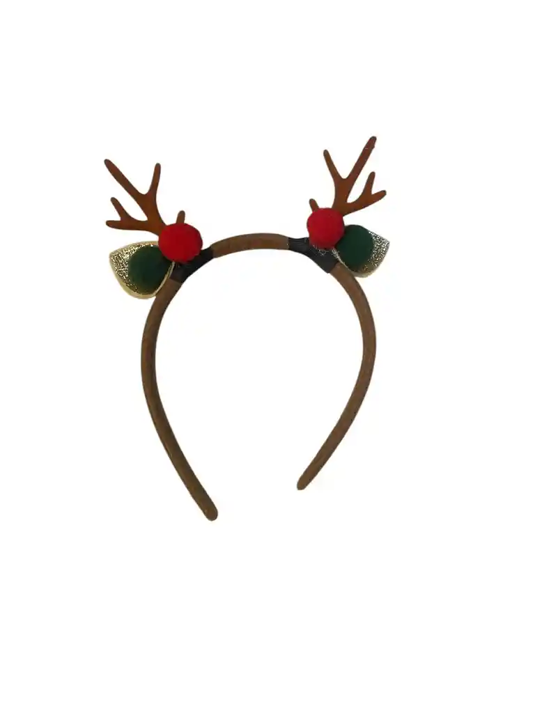 Diadema café navideña cuernos pequeños y pompones