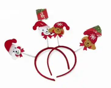 Son dos diademas navideñas de color rojo con figuras decorativas en la parte superior Cada diadema tiene dos adornos sujetos con resortes En una se ven caras de osos de color blancos de nieve con gorro rojo y moño En la otra se ven caras de osos de color cafe con gorro navideño y moño rojo Son accesorios festivos ideales para celebraciones de navidad y eventos tematicos formas en que lo buscarian los humanos diadema navideña diadema de navidad accesorios navideños para fiesta diadema de osos diadema navideña surtida X3und