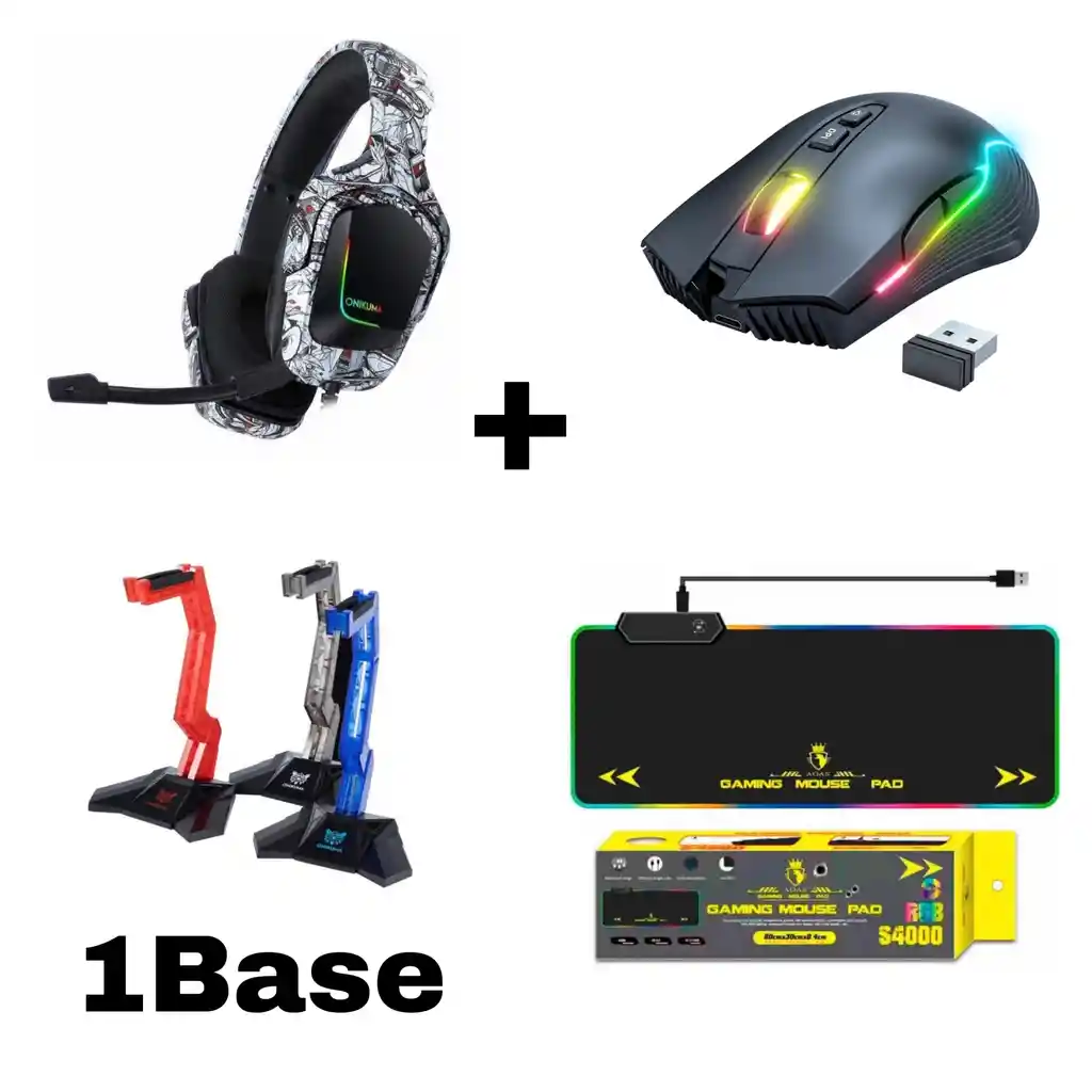 Diadema Onikuma K20 Camuflada Blanca + Mouse Inalambrico + Base + Pad Mouse. Base disponible en color: *Negro. *Rojo. *Azul.