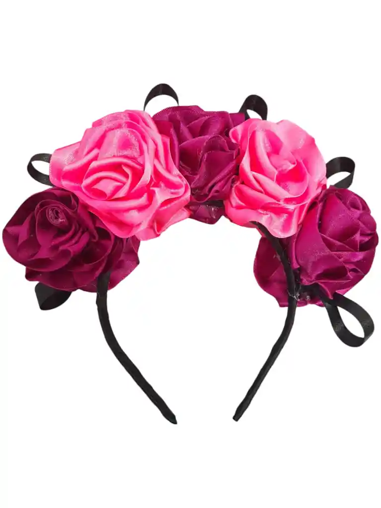 Diadema de cinta satinada diseño de rosas forrada en cinta negra ideal para diferentes disfraces de Halloween como catrina colores variados producto artesanal echo a mano Apta para adulto y niño disponibilidad inmediata si deseas algo adicional indícanos y con gusto te colaboramos, manejamos gran variedad de productos