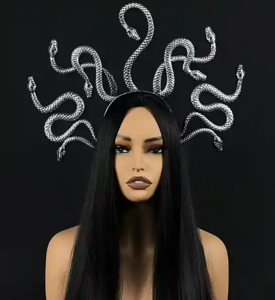 Diadema Plástica Serpiente Medusa Dorada o Plateada – Cosplay Horror Halloween 🎭🐍 Transforma tu look en segundos con esta diadema de serpientes estilo Medusa, perfecta para disfraces de Halloween, fiestas temáticas, cosplay o teatro. Su diseño de serpientes entrelazadas en tonos dorado o plateado le da un efecto impactante y misterioso que roba miradas. ✨ Características: Material: plástico resistente y ligero. Diseño de serpientes realistas 🐍. Colores disponibles: dorado o plateado (🎨 se envía según disponibilidad de la tienda). Tamaño estándar, cómodo de llevar por horas. Ideal para cosplay, disfraces, eventos de terror y carnavales. Con esta diadema tendrás el accesorio perfecto para un disfraz único, llamativo y lleno de estilo. 🎃👑