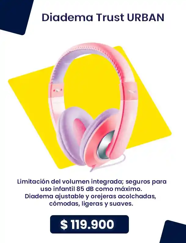 Auriculares para niños. Diseño resistente y llamativo. Limitación de volumen. Uso seguro para niños de 4 años de edad en adelante (conforme con la norma de seguridad europea EN71 para niños). Diadema ajustable con cómodas y suaves almohadillas circumaurales. Botón de control en el cable para ajustar fácilmente el volumen. Incluye hoja con adhesivos para personalizar los auriculares