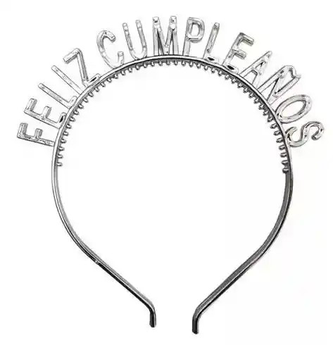 Diadema Vincha Feliz Cumpleaños Plateada , Hora Loca, Carnaval, Año Nuevo